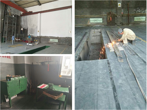干凈雪白的墻面與漆黑光亮的地面形成了鮮明的視覺沖擊,墻面上 “講高效、重務(wù)實(shí)”六個(gè)鮮紅的大字,言簡意賅的表達(dá)了我們機(jī)車修理員的工作精神;地面全部用舊皮帶進(jìn)行鋪設(shè),既干凈整潔,實(shí)現(xiàn)了修舊利廢,又能很好的避免油污。