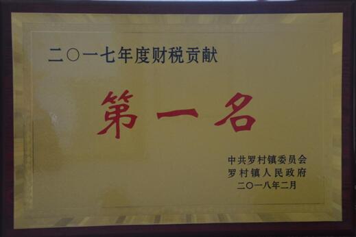 2017年2月8日,羅村鎮(zhèn)召開2017年度總結表彰大會,對2017年成績突出的先進集體和個人進行表彰獎勵,集團公司榮獲羅村鎮(zhèn)財稅貢獻第一名的榮譽稱號。
