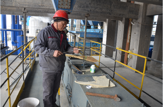 余熱發(fā)電中控員張明正在對真空泵進(jìn)行壓油