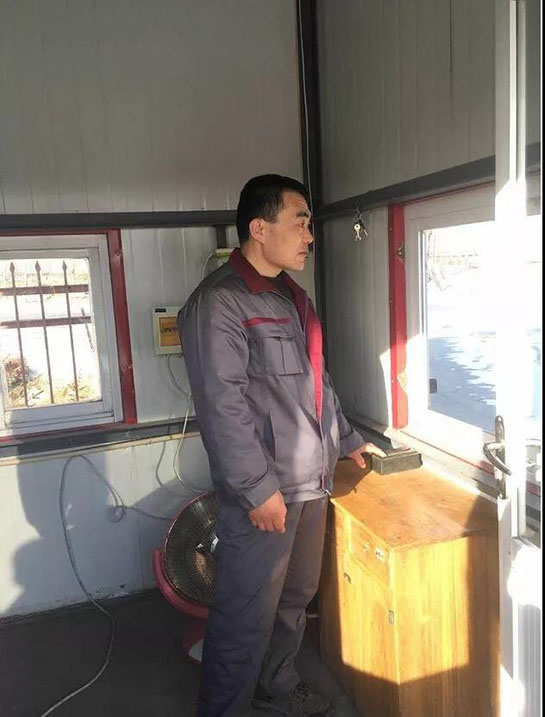 水泥車(chē)間王木軍守衛(wèi)在辦公區(qū)門(mén)崗
