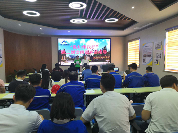 為提高各位參賽選手的能力,保證“良知伴我行”職工朗讀朗誦比賽取得良好的效果。6月24日,集團辦公室邀請區(qū)電視臺文體部主任李麗、主持人王寧、攝像記者車俊艷、張志凌霄四位專業(yè)老師做賽前指導(dǎo)。四位老師針對每位參賽選手的表現(xiàn)和稿件內(nèi)容,從語調(diào)、節(jié)奏、走臺、故事講述、排比句等朗讀技巧進行了現(xiàn)場示范。參賽選手經(jīng)過老師的專業(yè)指導(dǎo),掌握了更好的朗讀朗誦技巧,對正式比賽充滿了信心。