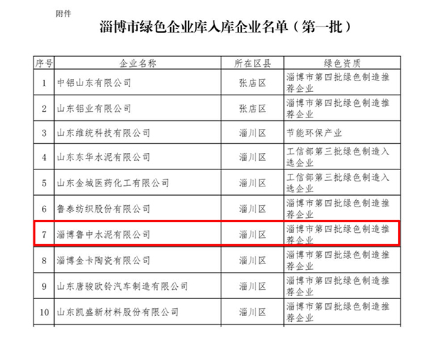魯中水泥入選淄博市首批金融支持綠色企業(yè)
