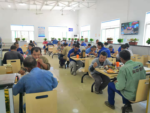 重裝后的食堂桌椅整齊、環(huán)境干凈整潔、布置舒適溫馨、菜色新鮮、品類豐富,以自助餐和半自助餐等形式就餐,不僅滿足了生活區(qū)職工和熱電廠、供料等單位員工的就餐需求,同時也為各類送貨司機和施工人員提供了就餐便利,用實際行動踐行了致良知思想,真正做到了“為員工謀福祉”。