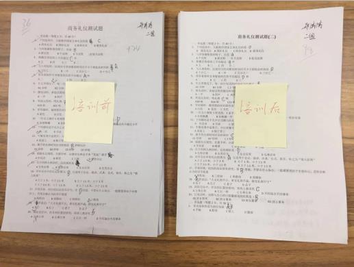 本次培訓(xùn)設(shè)置了前后對比測試評估,培訓(xùn)前測試平均分為38分,培訓(xùn)后測試平均分為87分,成績有了明顯提升!通過培訓(xùn),既讓員工對商務(wù)禮儀規(guī)范的理念、規(guī)范的實(shí)務(wù)性操作有了新的認(rèn)知,同時(shí)也對如何強(qiáng)化自身良好的職業(yè)素養(yǎng)有了進(jìn)一步的了解,為提升企業(yè)的整體形象打下良好基礎(chǔ)。