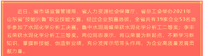 魯中水泥周峰、李豐云榮獲山東省建材行業(yè)職業(yè)技能競(jìng)賽優(yōu)秀選手