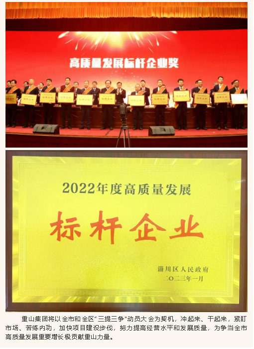 重山集團榮獲“2022年度高質量發(fā)展標桿企業(yè)”