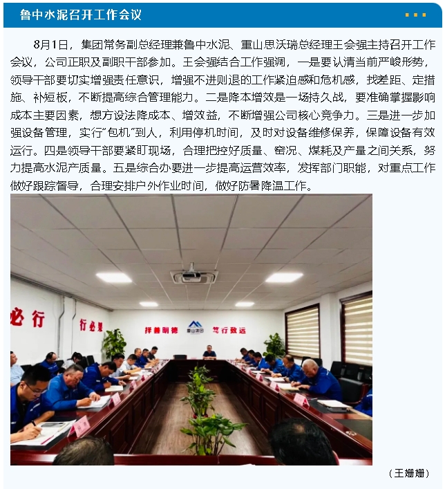 魯中水泥召開各級各類工作會議,深入推進提質增效
