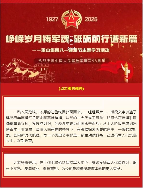 【頭條】崢嶸歲月鑄軍魂 砥礪前行譜新篇——重山集團開展慶“八一”主題學習活動