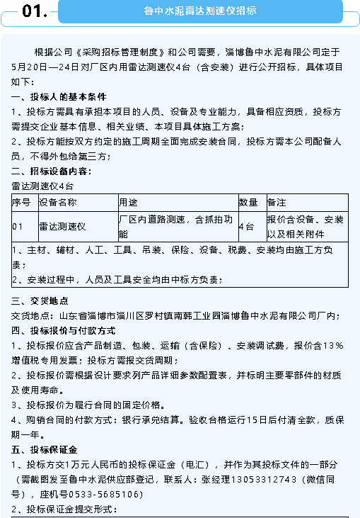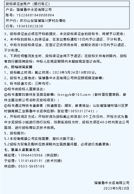 【招標(biāo)公告】魯中水泥、鵬峰化工