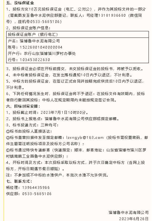 【招標公告】魯中水泥