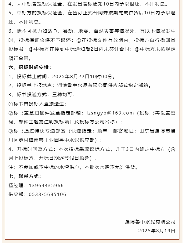 【招標(biāo)公告】魯中水泥