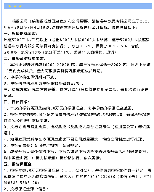 【招標(biāo)公告】魯中水泥