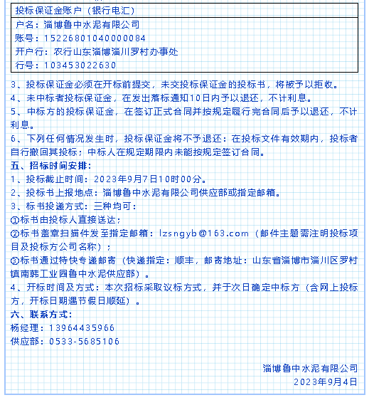 【招標公告】魯中水泥