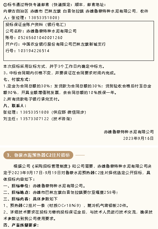 【招標(biāo)公告】魯蒙水泥