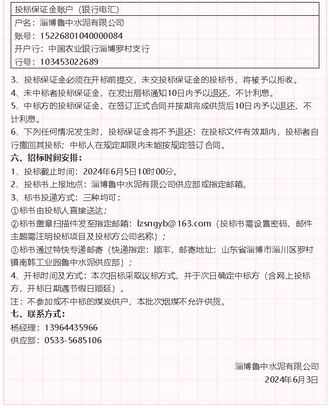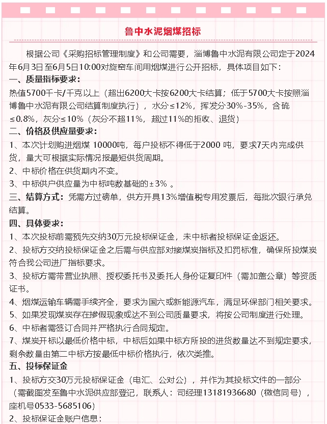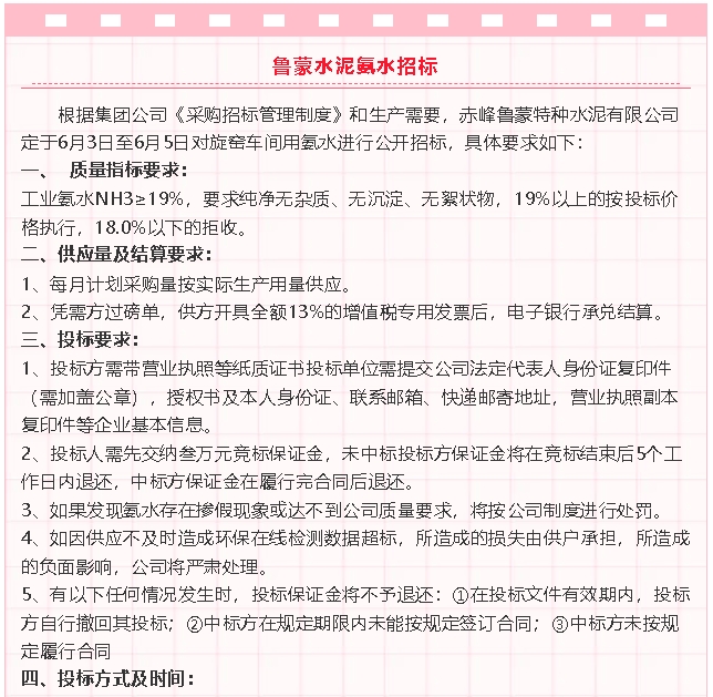 【招標公告】魯中水泥煙煤,魯蒙水泥氟石膏運輸、氨水招標