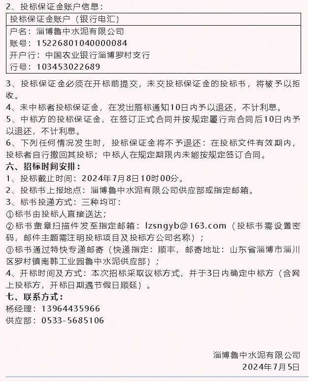 【招標公告】魯中水泥