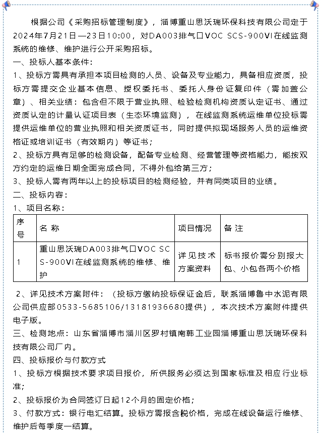 【招標(biāo)公告】重山思沃瑞