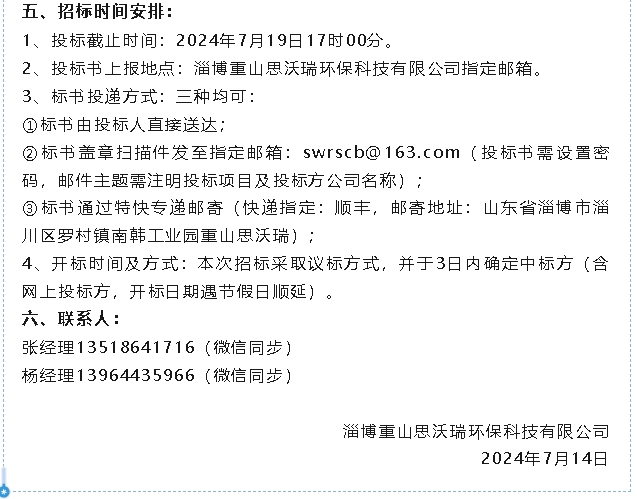 【招標(biāo)公告】重山思沃瑞