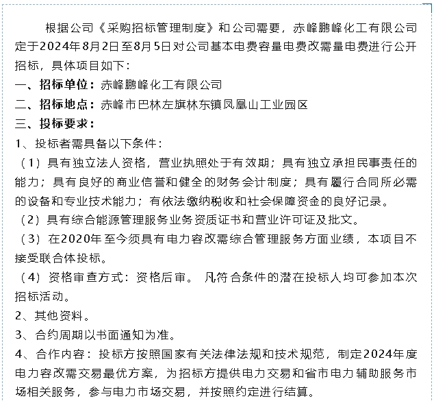【招標(biāo)公告】鵬峰化工