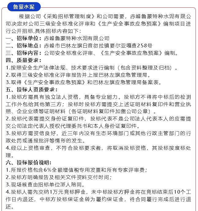 【招標(biāo)公告】魯蒙水泥、魯中水泥