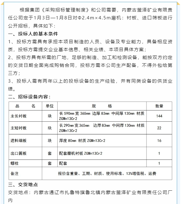 【招標(biāo)公告】螢澤礦業(yè)