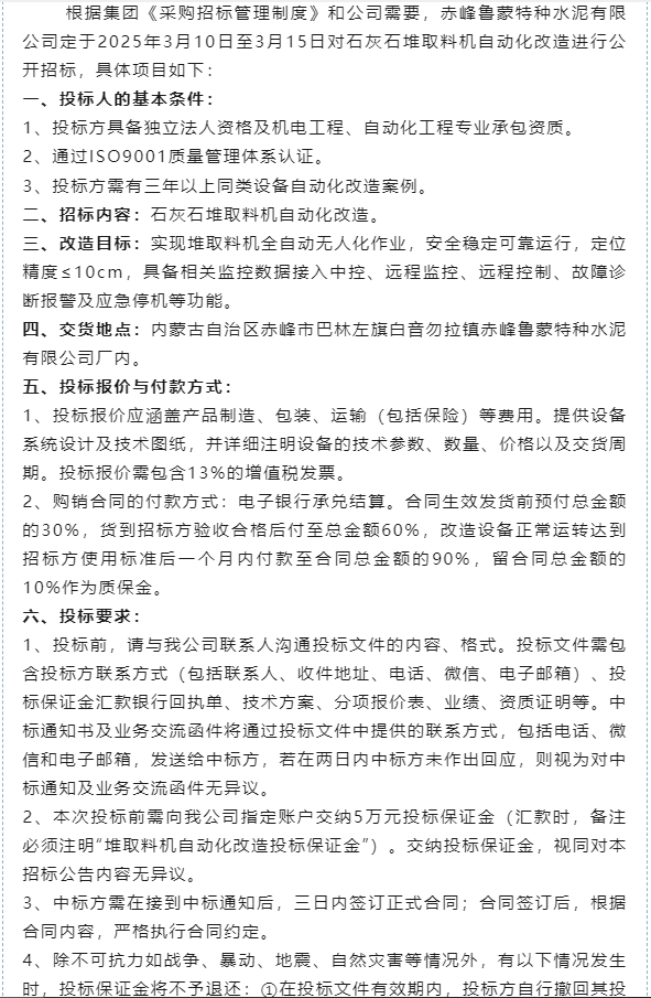 【招標公告】魯蒙水泥