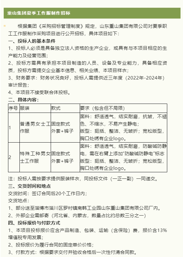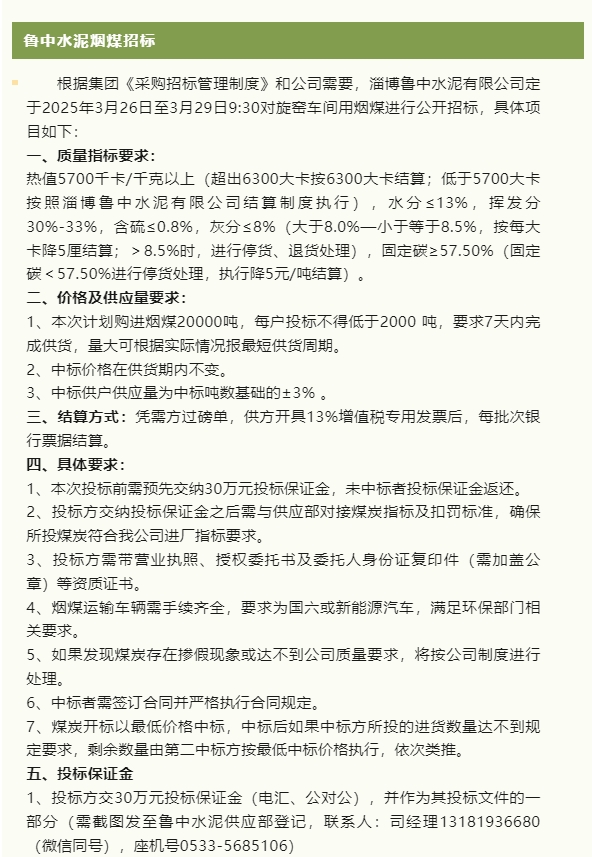 【招標公告】重山集團、鵬峰化工、魯中水泥