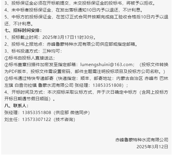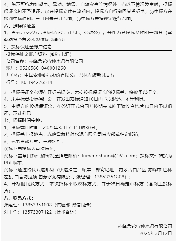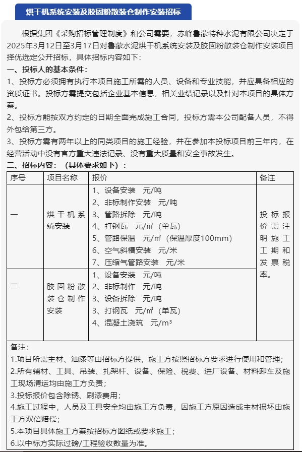 【招標公告】魯蒙水泥