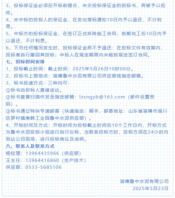 【招標(biāo)公告】魯中水泥