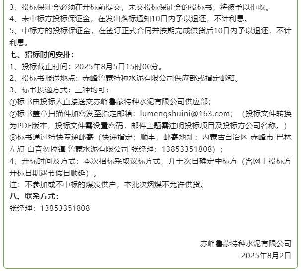 【招標公告】魯蒙水泥