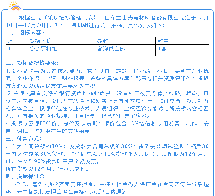 【招標(biāo)公告】重山光電