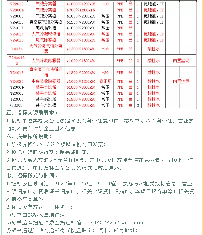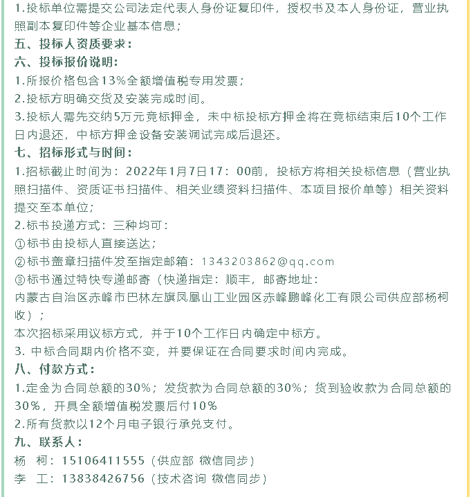 【招標公告】鵬峰化工