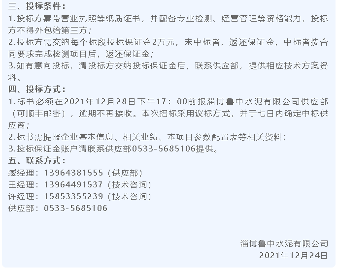 【招標(biāo)公告】魯中水泥