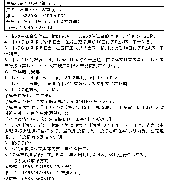 【招標公告】魯中水泥