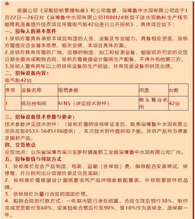 【招標(biāo)公告】魯中水泥