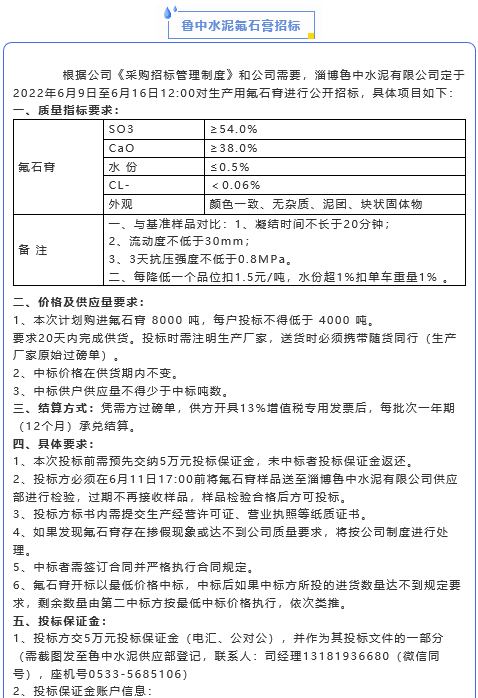 【招標(biāo)公告】魯中水泥氟石膏、物料運(yùn)輸招標(biāo)