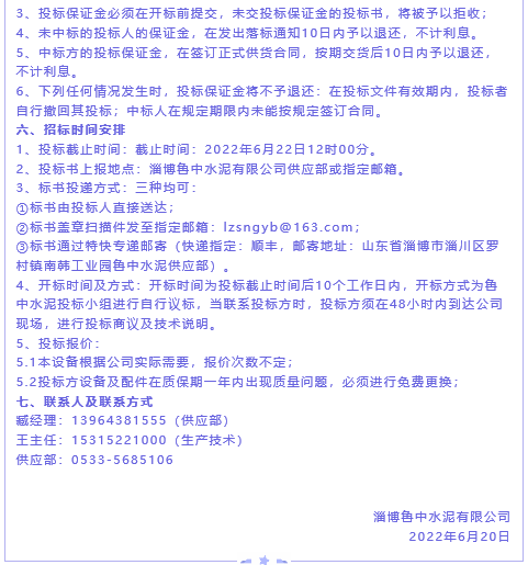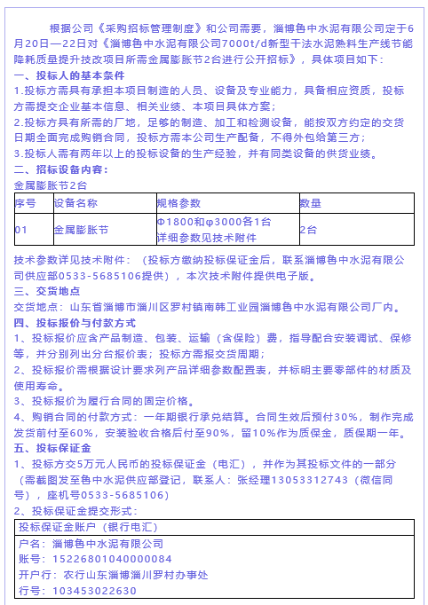 【招標公告】魯中水泥