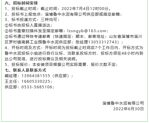 【招標(biāo)公告】魯中水泥