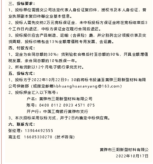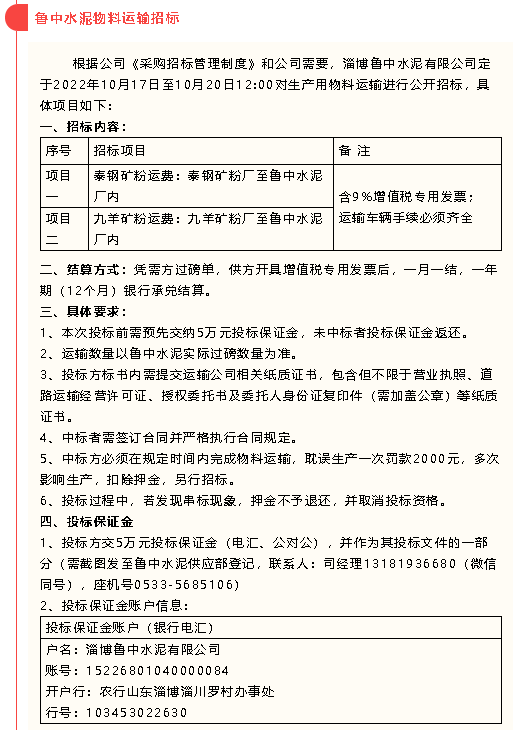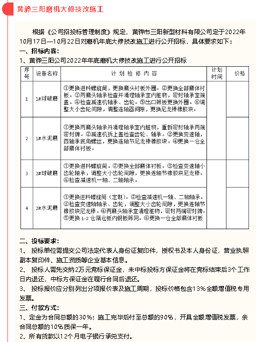 【招標(biāo)公告】黃驊三陽(yáng)、魯中水泥