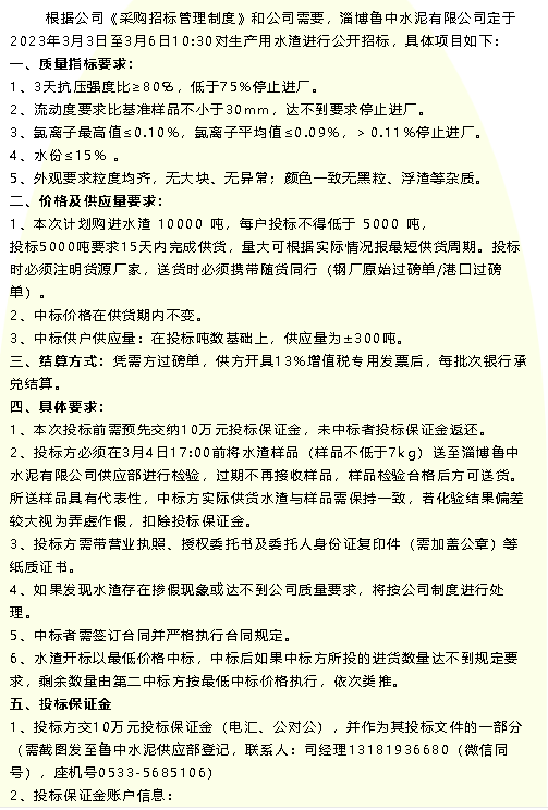 【招標公告】魯中水泥