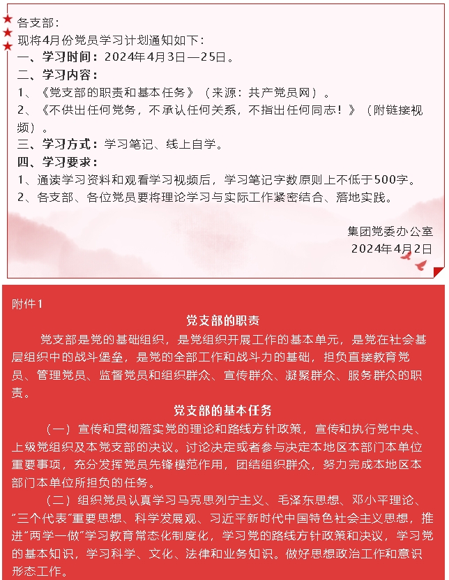 【通知】集團黨委4月份學(xué)習(xí)通知
