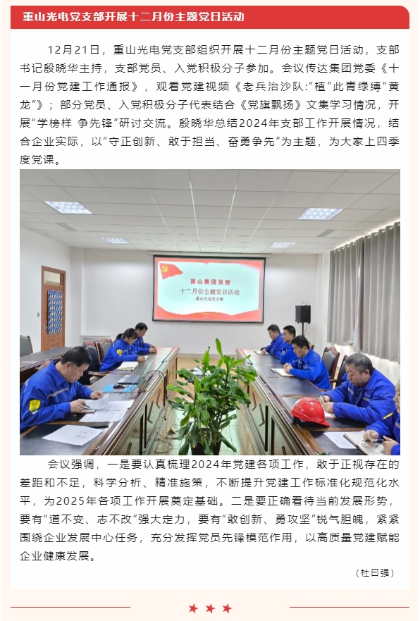 【黨建】集團(tuán)機(jī)關(guān)黨支部、重山光電黨支部開(kāi)展十二月份主題黨日活動(dòng)