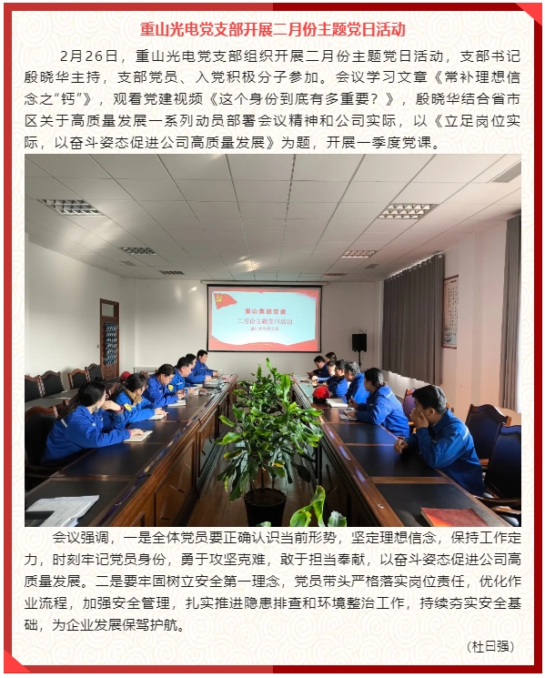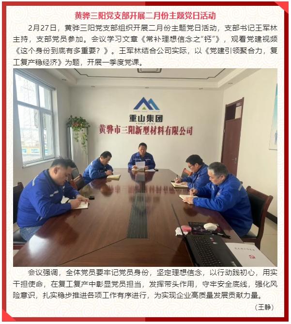 【黨建】重山光電黨支部、黃驊三陽黨支部、鵬峰化工黨支部分別開展二月份主題黨日活動