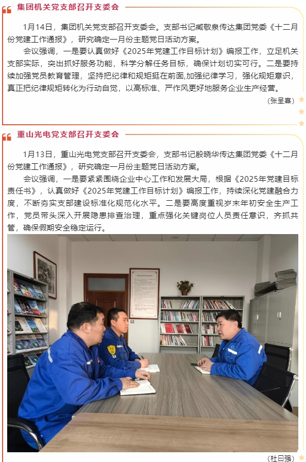 【黨建】集團(tuán)機(jī)關(guān)黨支部、重山光電黨支部、黃驊三陽黨支部分別召開支委會(huì)