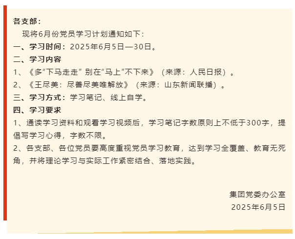【通知】集團黨委6月份學習通知