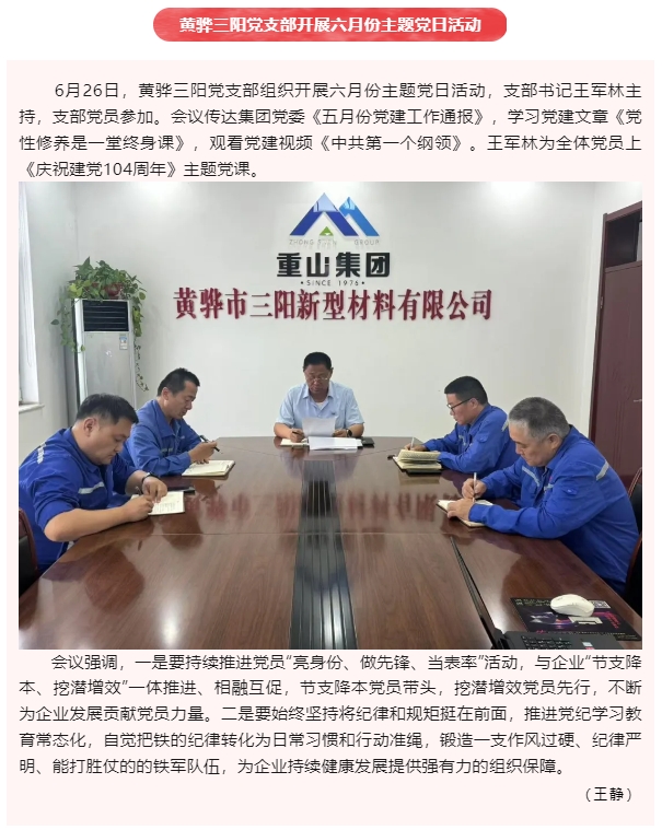 【黨建】南韓村黨支部、黃驊三陽黨支部、鵬峰化工黨支部分別開展六月份主題黨日活動