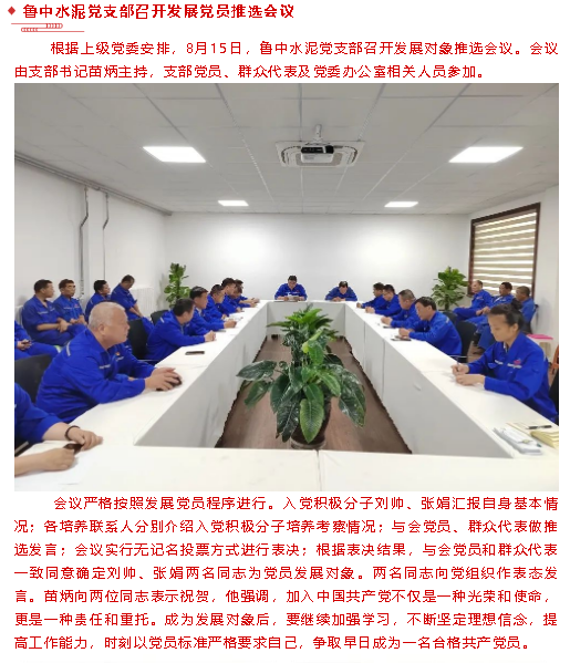 【黨建】魯中水泥黨支部召開發(fā)展黨員推選會(huì)議、集團(tuán)機(jī)關(guān)黨支部召開支委會(huì)
