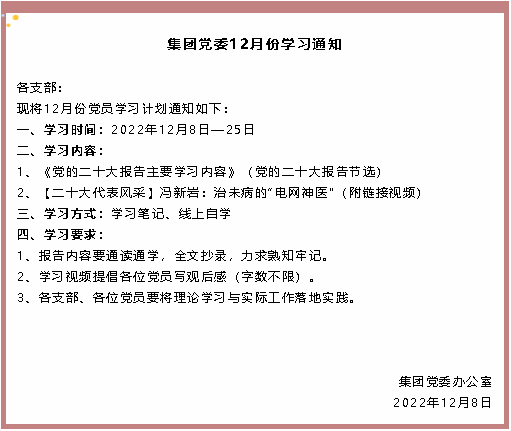 【通知】集團(tuán)黨委12月份學(xué)習(xí)通知