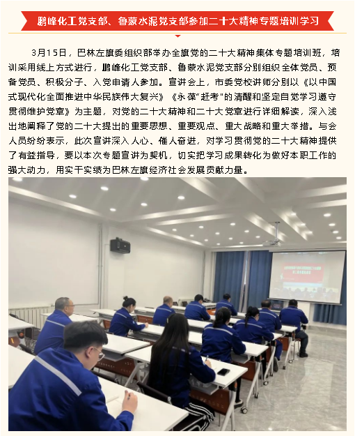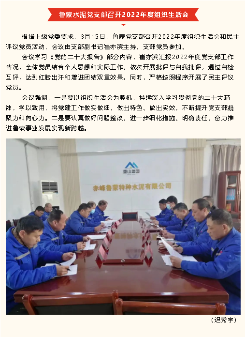 【黨建】鵬峰化工黨支部召開黨員集體學(xué)習(xí)會(huì)議、魯蒙水泥黨支部召開2022年度組織生活會(huì)