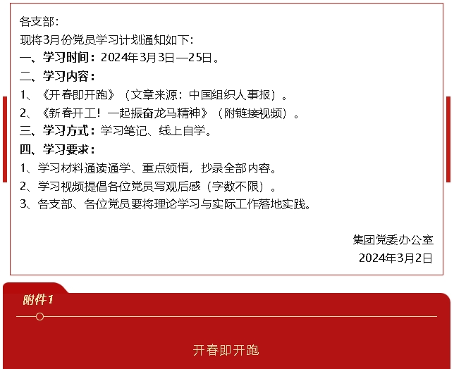 【通知】集團黨委3月份學習通知